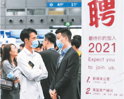 2021年4月24日,第十九届中国国际人才交流大会在深圳举行。大会采用线下线上并重的会展模式,共5个展馆,设展览洽谈、人才招聘、主题活动等板块;线上设虚拟展厅、线上招聘、线上会议等功能服务区。据了解,有来自30多个国家和地区的1200多家专业机构和组织,万余名海内外政府代表、专家学者、高端人才现场参会。近年来,留学人员回国发展的意愿呈明显增强趋势,海归人才质量优化,进一步体现出年轻化、高知化趋势。 图为在中国国际人才交流大会设立的海归人才招聘会上,求职人员与企业招聘人员交流。